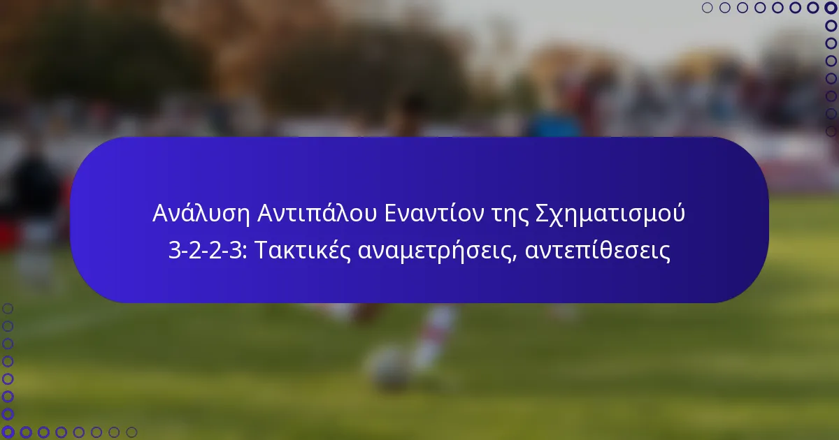 Οι κορυφαίες ομάδες συχνά επιδεικνύουν αποτελεσματικές στρατηγικές κατά της διάταξης 3-2-2-3. Ένα βασικό μάθημα είναι η σημασία της διατήρησης του πλάτους; οι ομάδες που απλώνουν το παιχνίδι μπορούν να τεντώσουν την άμυνα και να δημιουργήσουν κενά για διεισδυτικές τρέχουσες. Αυτή η τακτική έχει εφαρμοστεί με επιτυχία από συλλόγους τόσο σε ευρωπαϊκούς όσο και σε εγχώριους διαγωνισμούς.