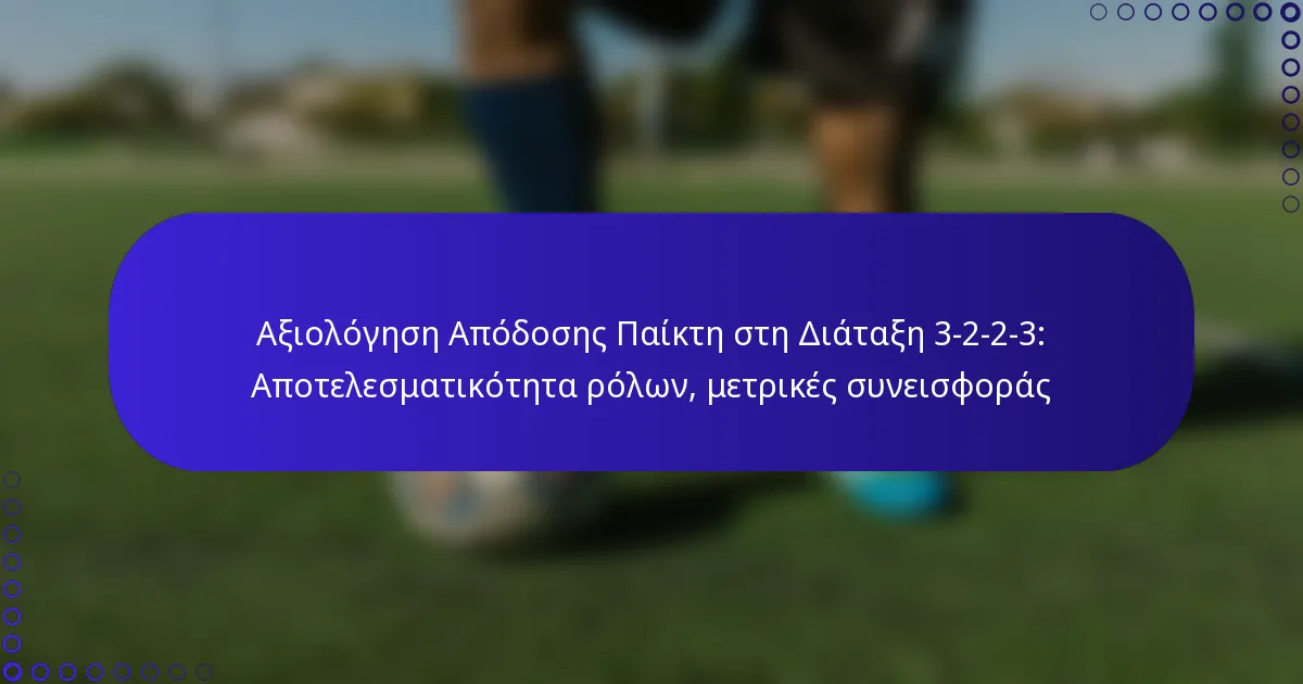 Οι συνεισφορές των παικτών στη διάταξη 3-2-2-3 μπορούν να μετρηθούν μέσω διαφόρων μετρικών που αξιολογούν την ατομική αποτελεσματικότητα και τη συνολική επίδραση στην απόδοση της ομάδας. Αυτές οι μετρικές περιλαμβάνουν βασικούς δείκτες απόδοσης προσαρμοσμένους σε κάθε θέση, επιτρέποντας μια ολοκληρωμένη αξιολόγηση των αμυντικών, των μέσων και των επιθετικών.